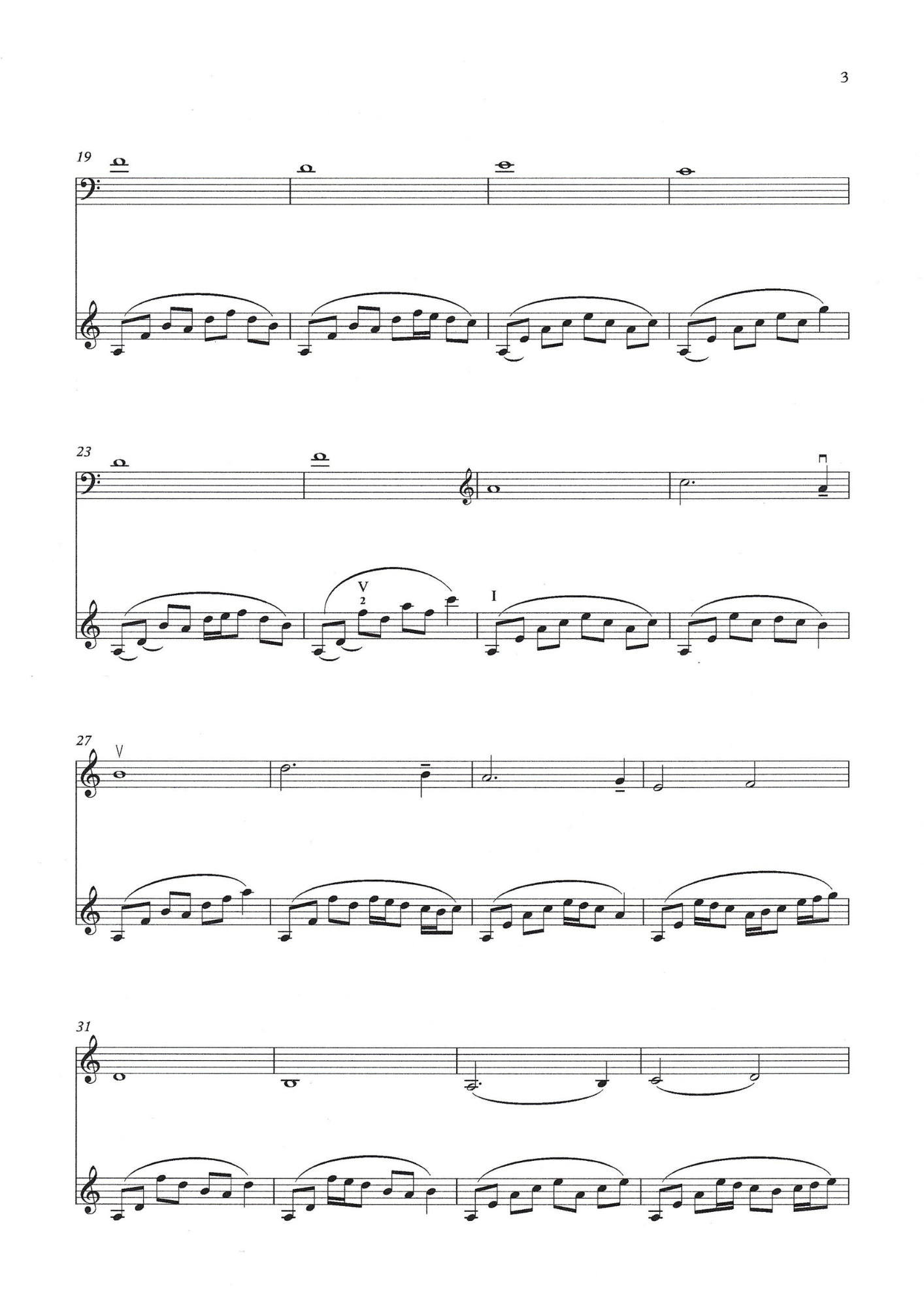 Memento Mori was composed in May 2018 and is originally for double bass and organ, or piano. The music is slow and reflective, expressing an atmospheric and evocative sound world and the solo line is simple and sustained, with a gently moving accompaniment which reflects the mood and emotion of the piece. Memento Mori is dedicated to the master luthier, Martin Penning, who was present for the premiere.