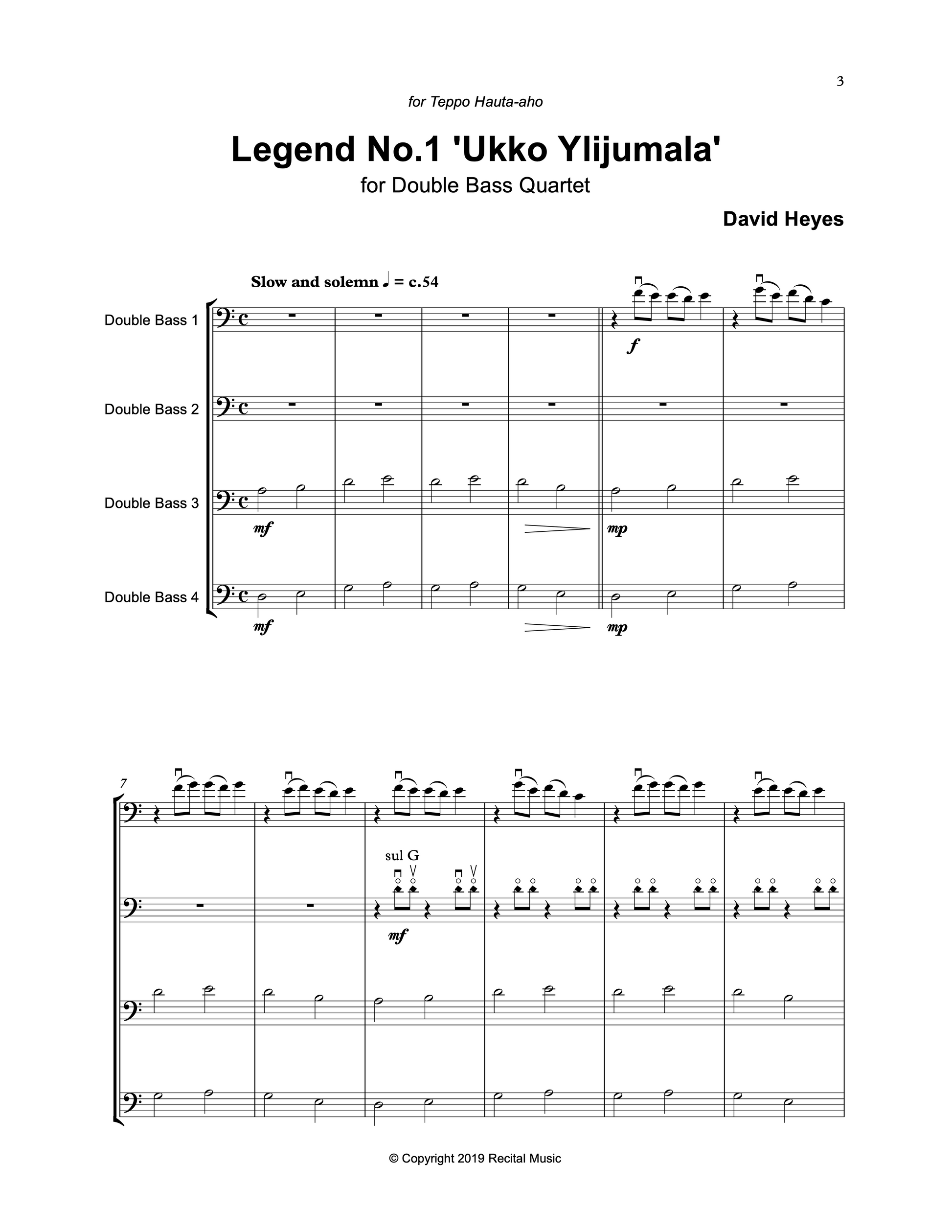 This quartet was composed for younger students for a concert to celebrate the music of the legendary Finnish bassist-composer, Teppo Hauta-aho to whom the quartet is dedicated.