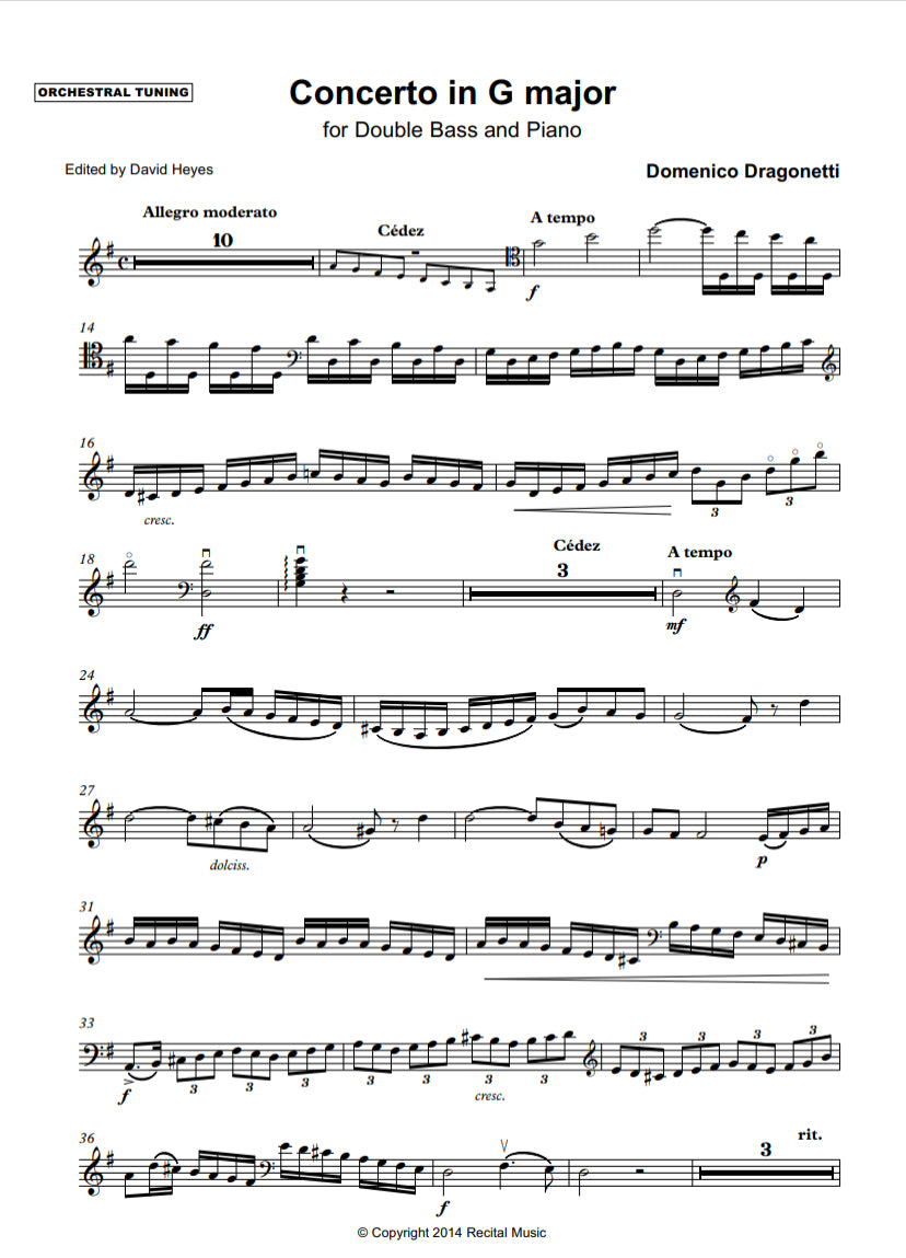 With that in mind, this is still a charming and evocative work that has player and audience appeal and is very easy on the ears. Many of the challenges for the soloist are technical and, almost a century after its first publication, it is still as popular as ever. Published in 1925, the first movement was performed at London's Wigmore Hall on 15 April the following year by Victor Watson (double bass) and Sidney Crooke (piano) and was described as a 'Contrabass Concerto by Dragonetti-Nanny.
