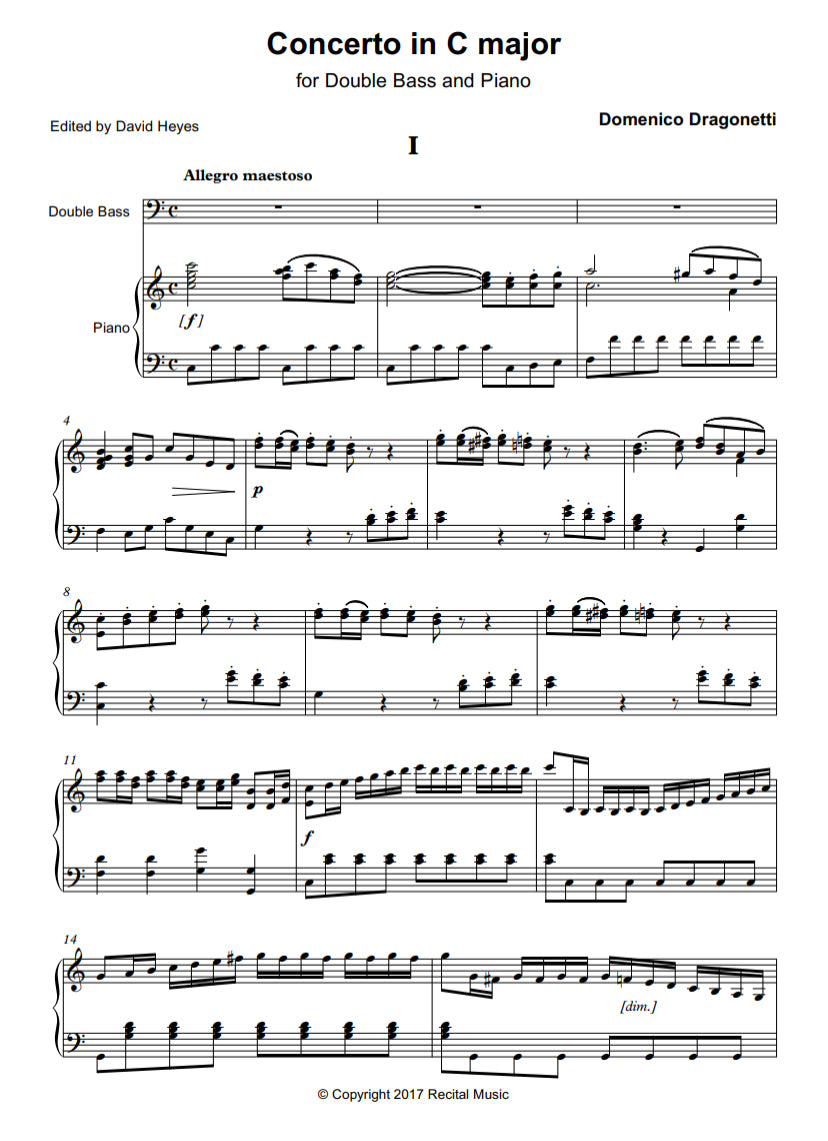 Dragonetti: Concerto in C Major for double bass and piano (edited by David Heyes)