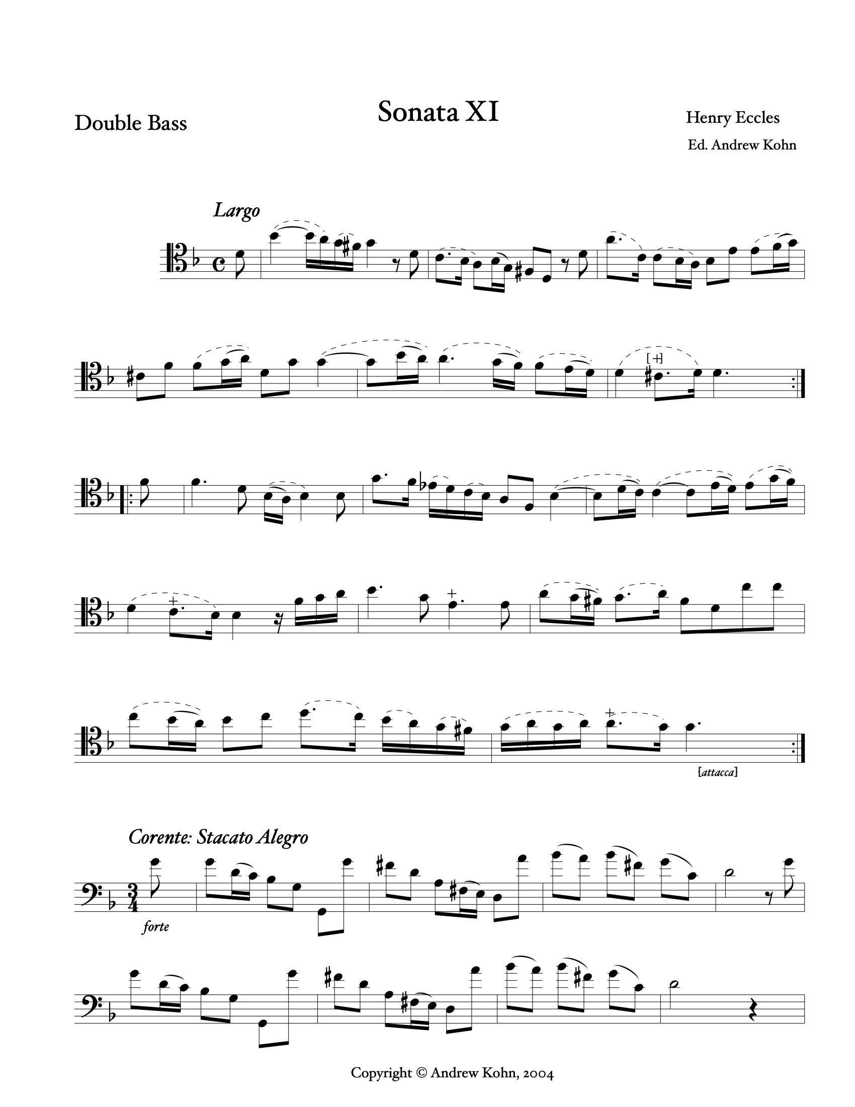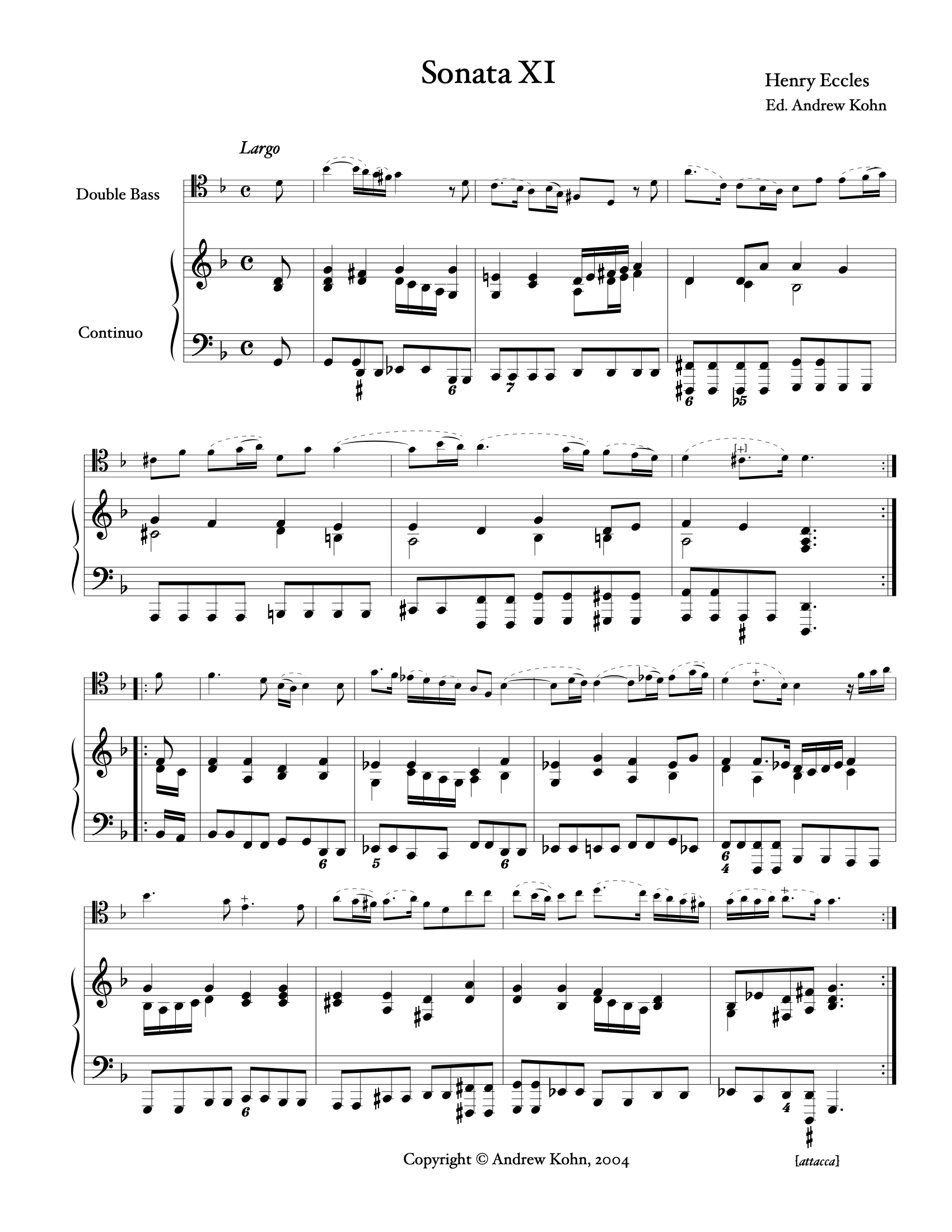 Henry Eccles: Sonata No. 11 (published 1720), for string bass and piano (Kohn)