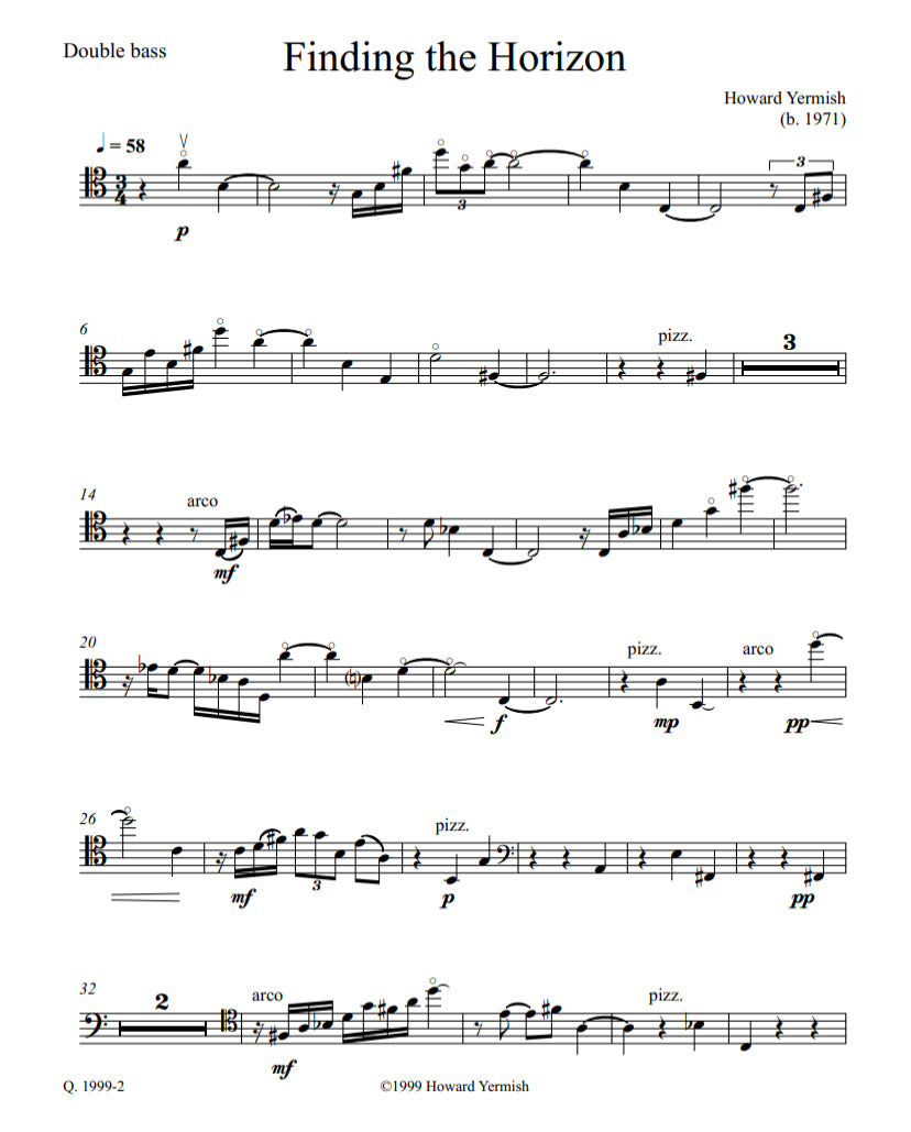 Howard Yermish: Finding the Horizon for Double Bass and Piano/Harp