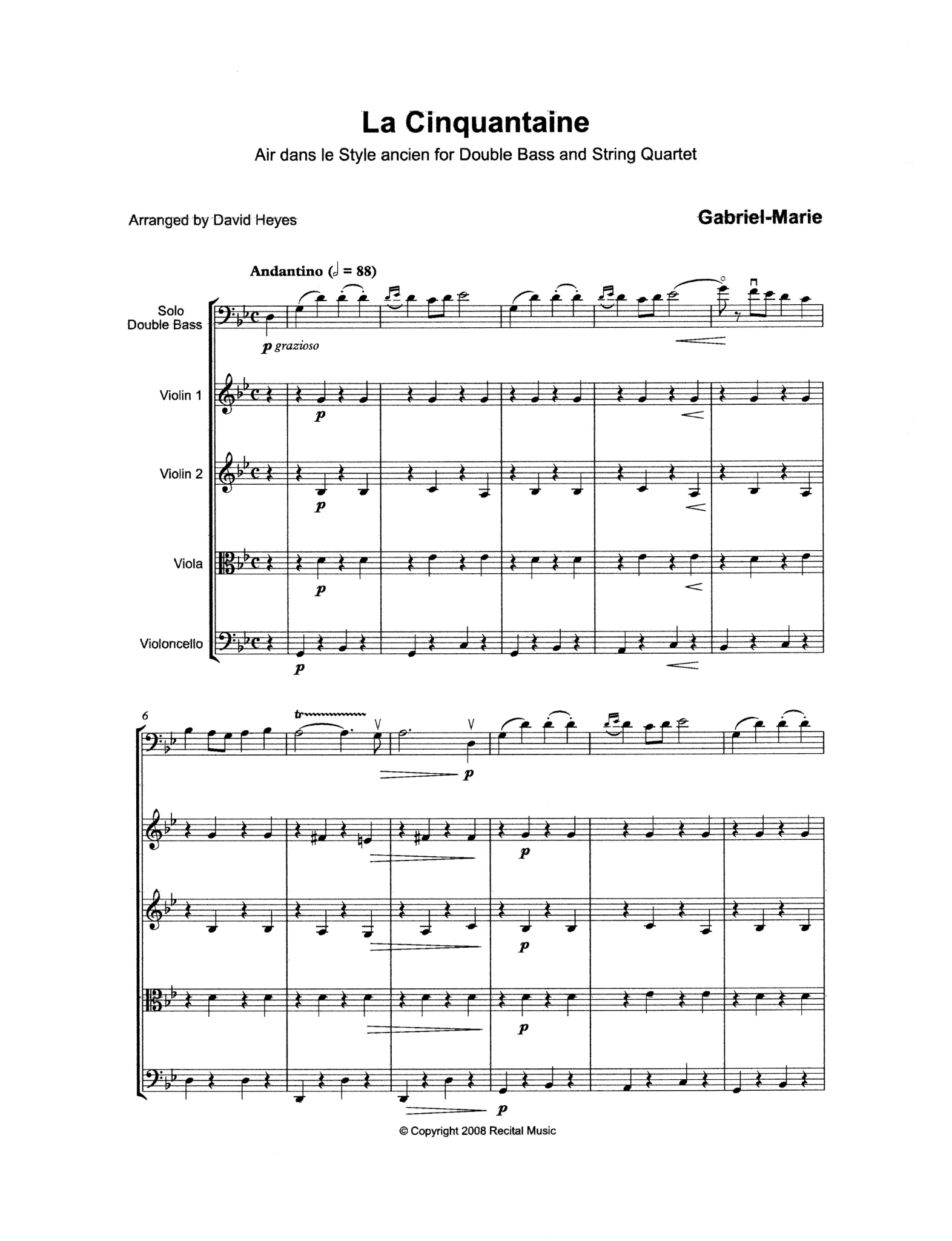 Gabriel-Marie: La Cinquantaine for double bass & string quartet (arr. Heyes)
