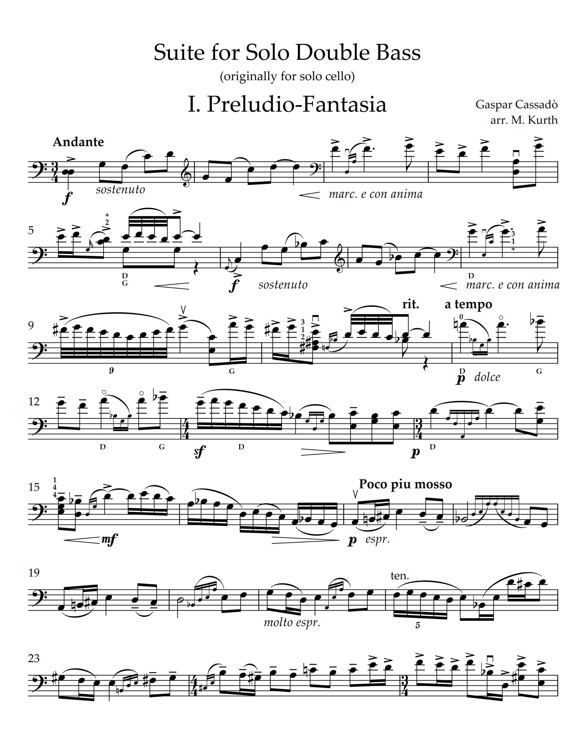 Gaspar Cassadò: Suite for Solo Double Bass (originally for solo cello) arr. Kurth