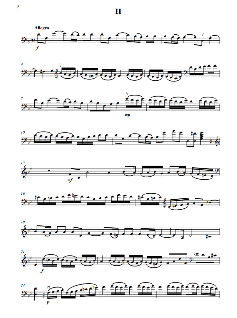 The four contrasting movements offer effective musical and technical challenges for the good intermediate bassist and this would make a suitable recital or study work for any bassist working in thumb position.