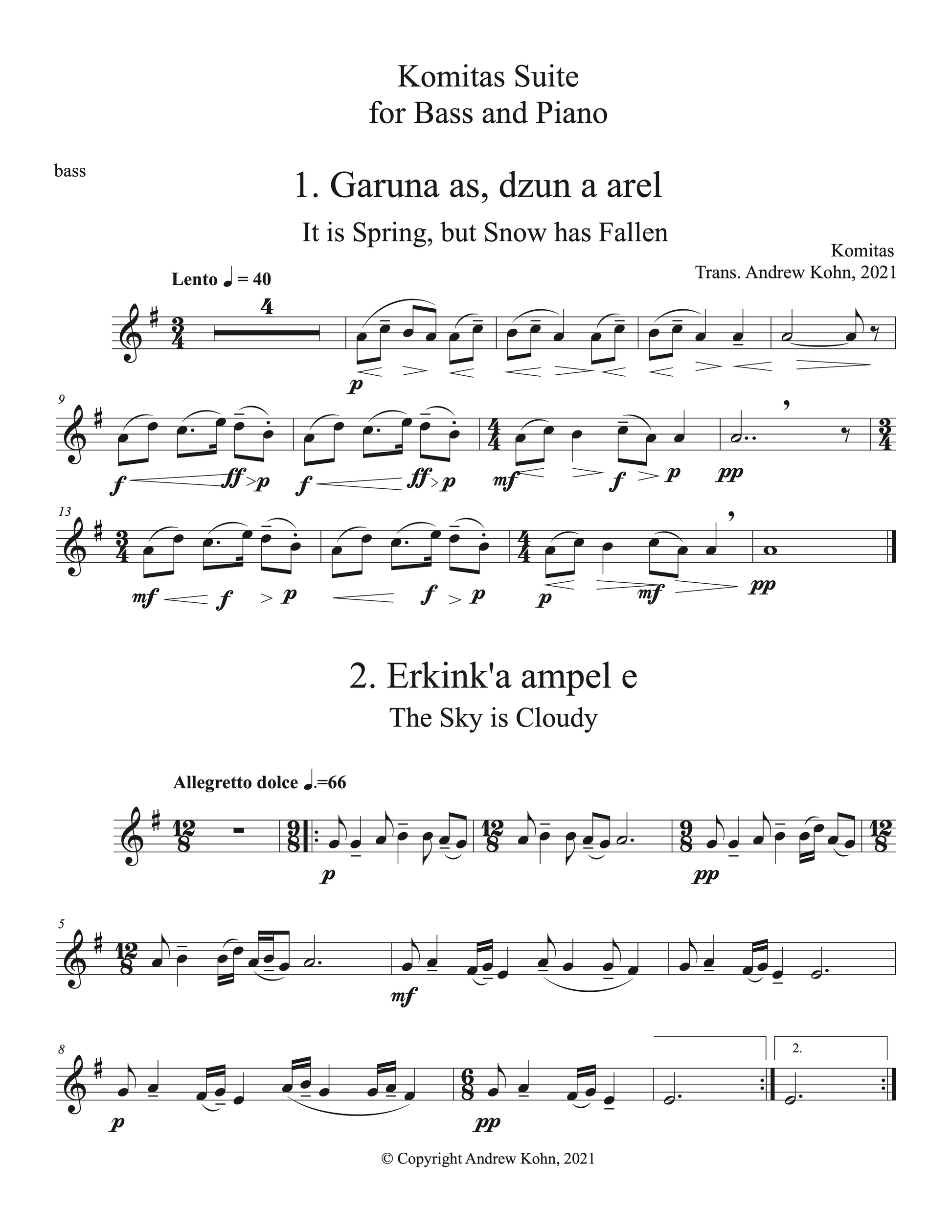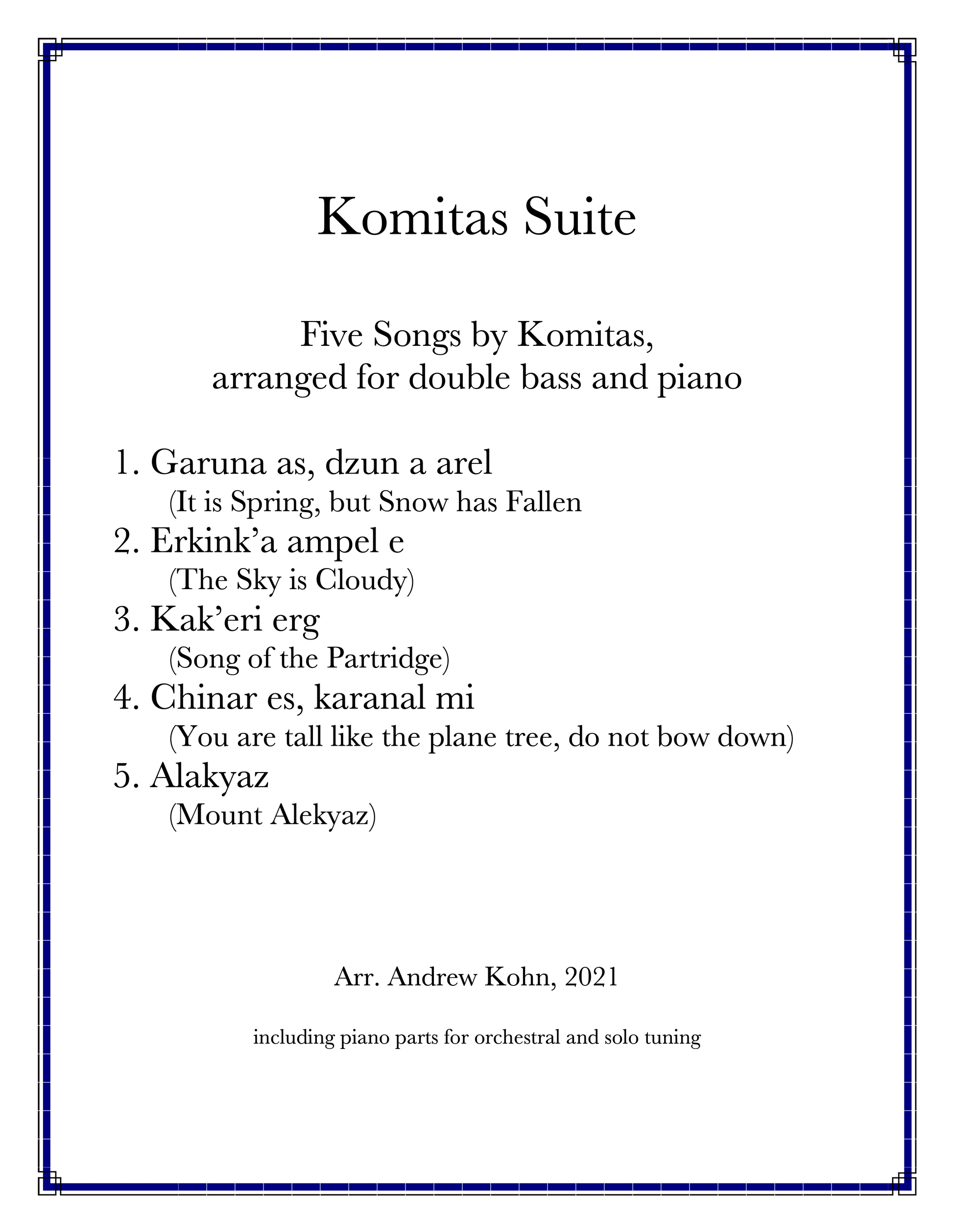 Komitas Suite: Five Songs for double bass and piano (arr. Andrew Kohn)