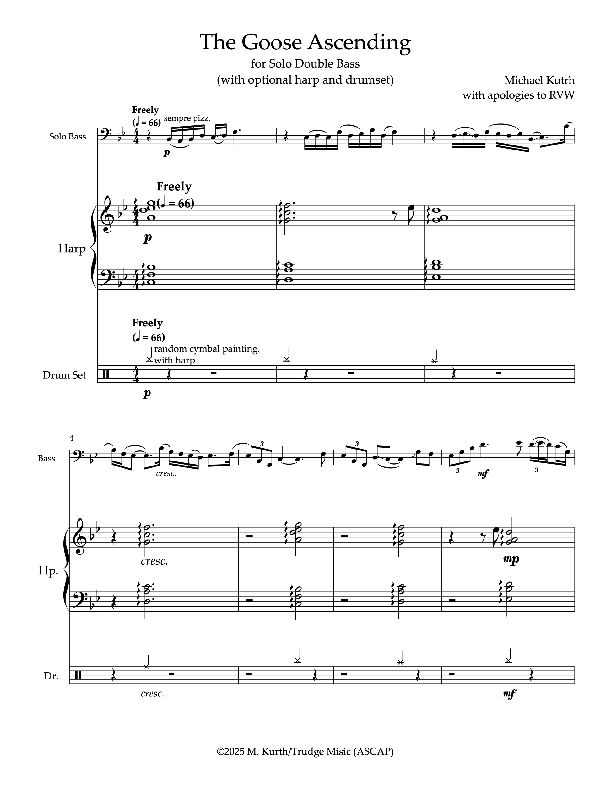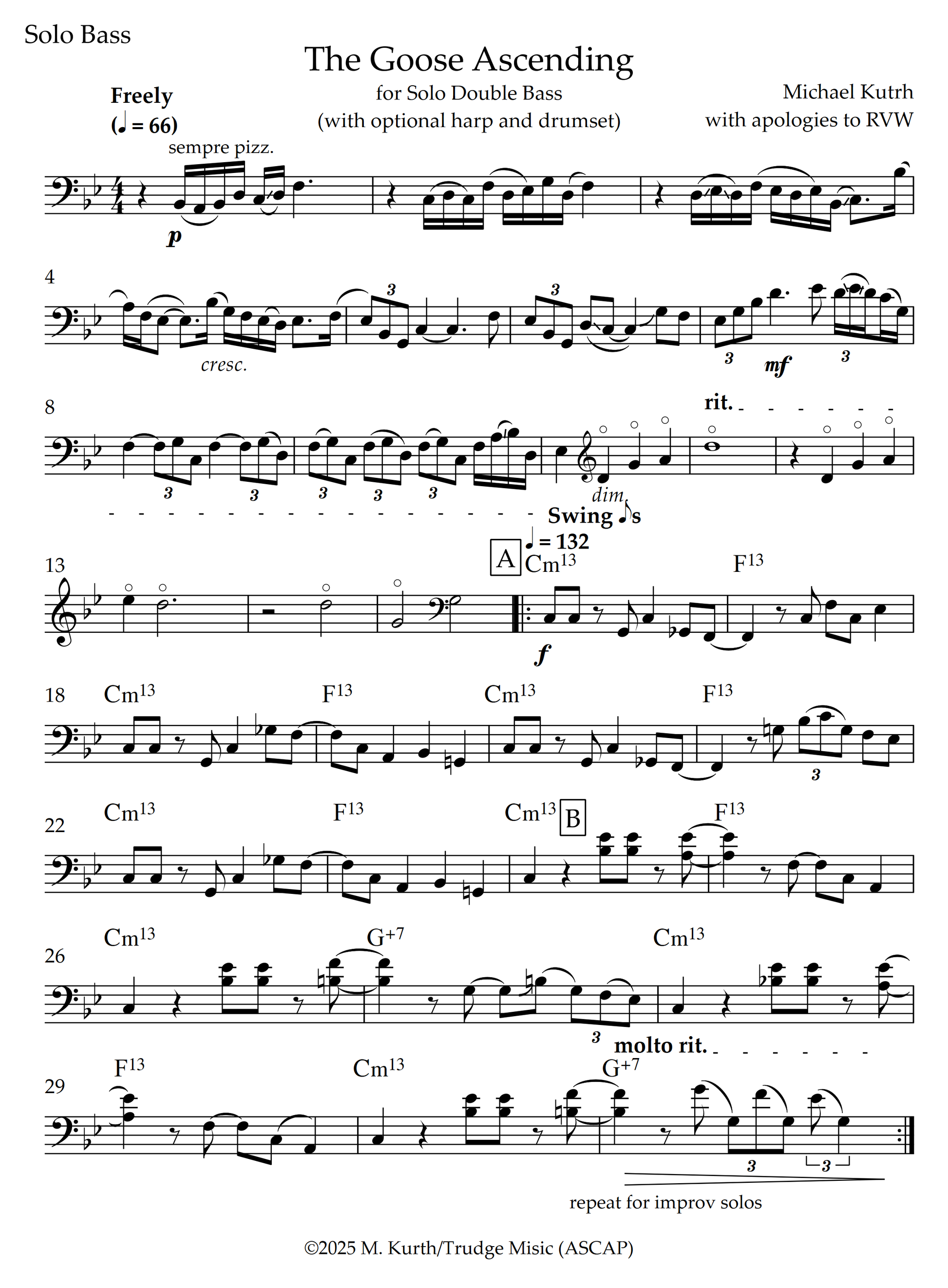 Michael Kurth: The Goose Ascending for Solo Pizzicato Double Bass