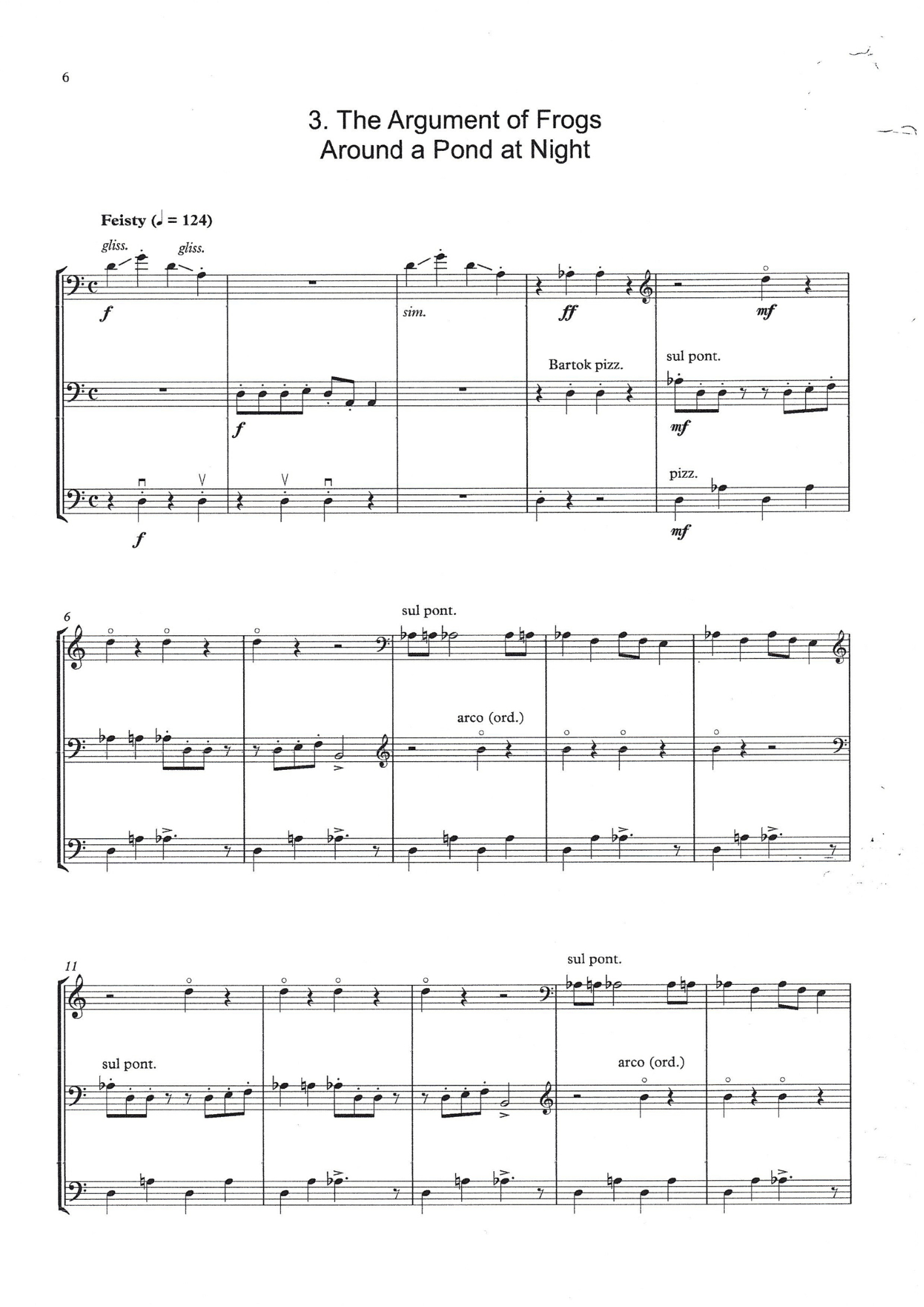 If one’s back porch happens be in the proximity of any pond or stream, a summer’s post-supper evening spent in a comfy chair on that porch will most certainly present that individual with a lovely cacophony of noisily serenading night creatures, not the least of which are the local frogs, depicted here most especially in the many dissonances on the middle section.