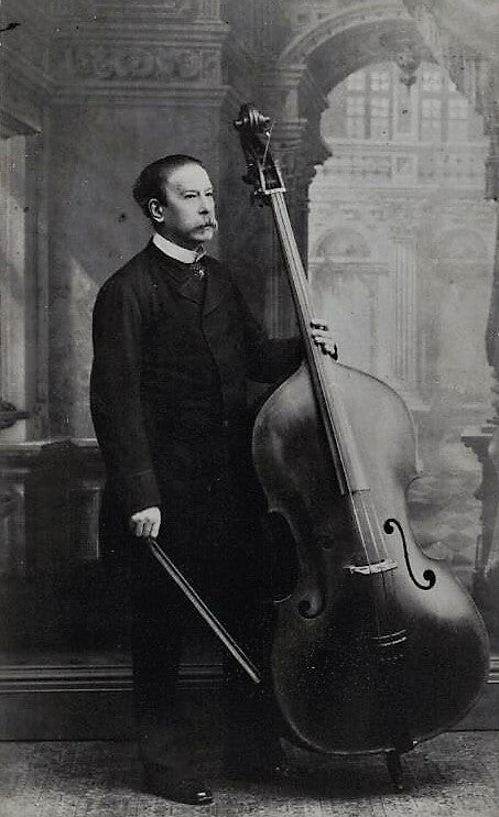 "How he bewildered us by playing all sorts of melodies in flute-like harmonics, as though he had a hundred nightingales caged in his double bass... I never wearied of his consummate grace and finish, his fatal precision, his heavenly tone, his fine taste. One sometimes yearned for a touch of human imperfection, but he was like a dead shot; he never missed what he aimed at, and he never aimed at less than perfection." [H.Haweis, 1888]