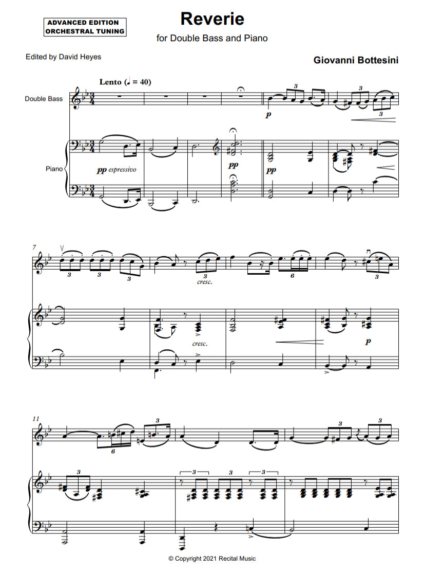 Giovanni Bottesini: Reverie (Advanced) for double bass & piano