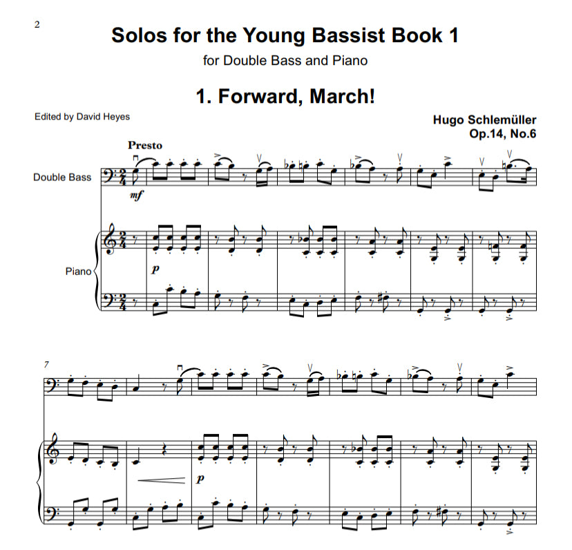 Hugo Schlemüller: Solos for the Young Bassist for double bass & piano (edited by David Heyes)