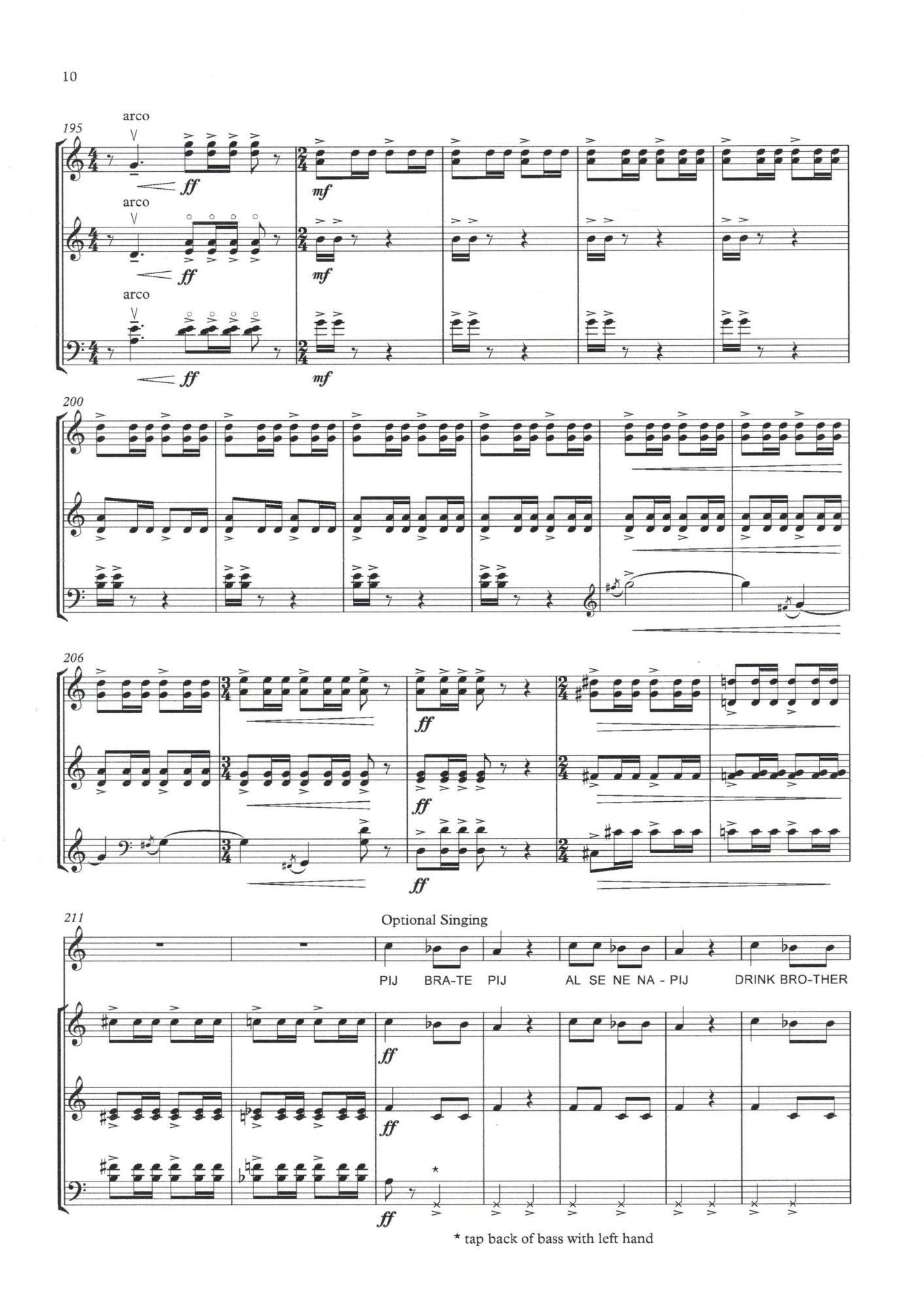 Garland from Dalmatia is a rhythmically charged and exciting work for the intermediate double bass trio. Based on three folk songs from Dalmatia, the costal part of Croatia, it is in a generally free form which the composer calls a garland. The contrasting sections, celebrating different moods and a wealth of colours, offer musical and technical challenges in equal measure with solo opportunities for each bassist.