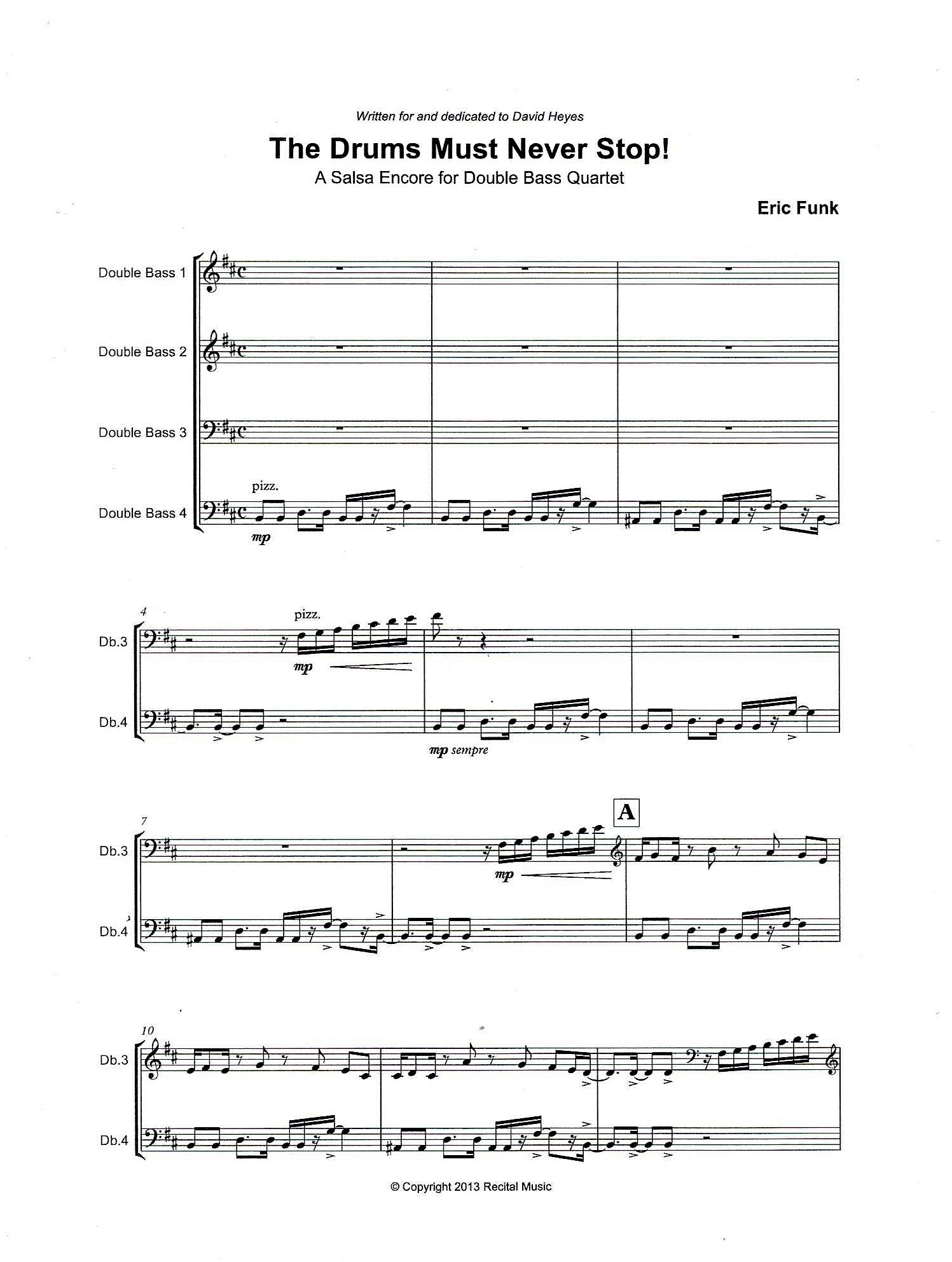Eric Funk: The Drums Must Never Stop! - A Salsa Encore for double bass quartet