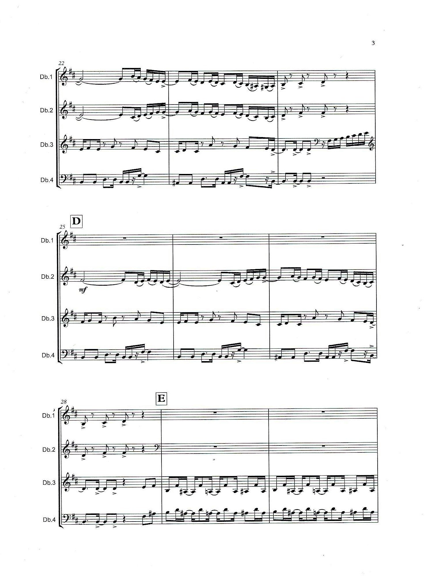 Instantly appealing, the quartet offers solo possibilities for each bassist and an opportunity for the intermediate quartet to feel the groove.
