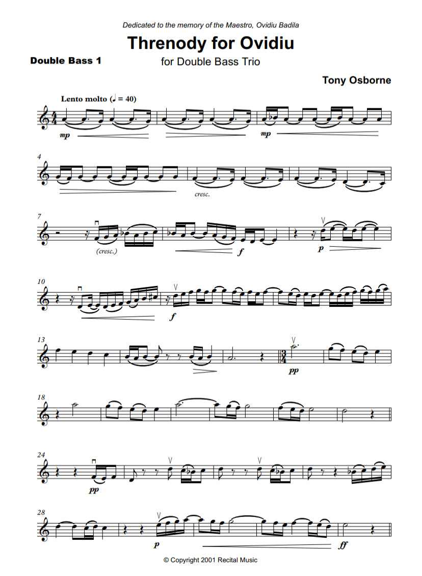 Tony Osborne: Threnody for Ovidiu for double bass trio