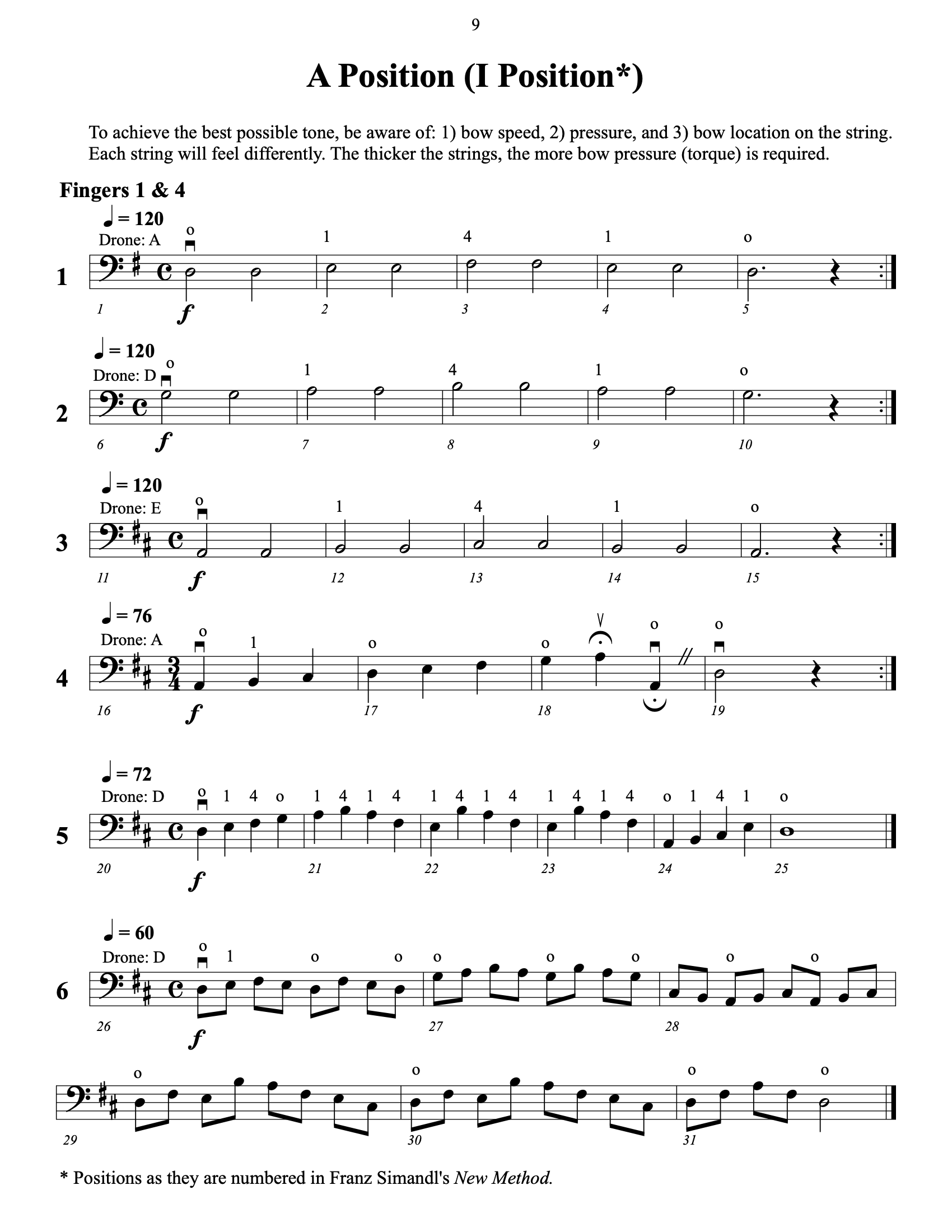 Franz Simandl’s famous New Method (which is not “new” at all – it was first published about a century and a half ago) is historically the most prominent proponent of this system. In the “Closed Hand” technique, the left-hand spans a whole step (on one string), which requires the hand to stay compact and move