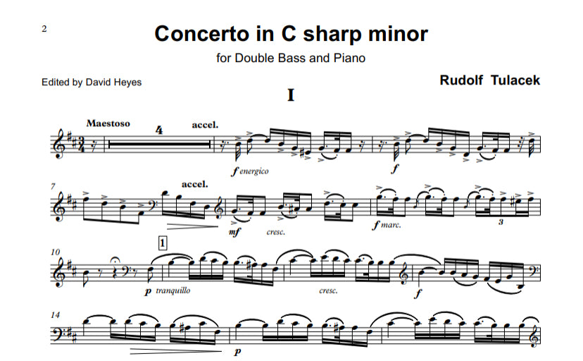 Composed in 1942 and orchestrated two years later, Rudolf Tuláček's Concerto in C# minor was in manuscript until Recital Music’s first published edition in 2015 and is aimed at the advanced bassist. Written in the grand romantic style, this is a magnificent bravura concerto full of technical and musical challenges.